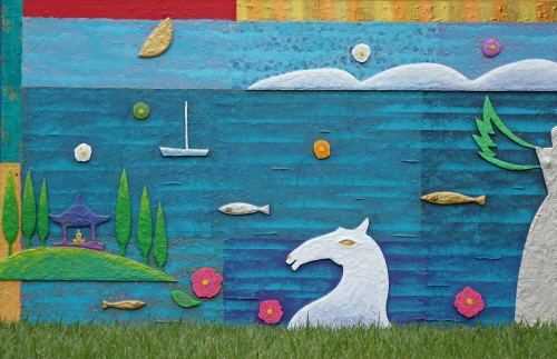 뿐만아니라, 옛날 밥상에 동물과 바다 등이 그려진 정크아트(Junk Art)는 우리에게 추억의 향수를 마시게 합니다. 자연 속에 배치한 설치미술(Installation)의 형상은 작가의 순수한 내면이 엿보이는 한지로 그려 낸 대작은 독특한 매력을 느끼게 하는 흥미로운 인상들입니다.
