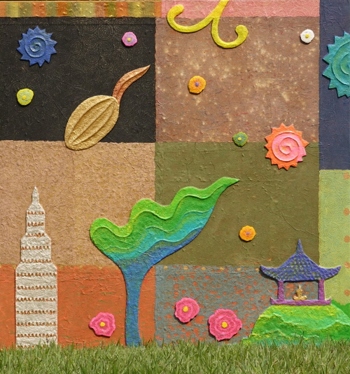 가정의 달과 어린이 달에 걸맞는 작가의 <유토피아> 세상은 우리들에게 즐거움과 기쁨, 상상과 공상의 세계를 넘나들게 하는 <우주의 신세계>와 같은 신비를 안겨줄 것입니다. 갖가지 사물과 자연과 동물과, 사람의 형상을 작가 나름으로 해석하는 자유로움을 지니며 한지를 주조로 색한지, 한복천, 탈색지, 낙수지, 멀티풀 철사, 원석, 크리스탈, 아크릴 과슈, 종이 펄프, 줌치, 돌가루, 비즈나 반짝이 등을 접목 시켜 다채로운 표현을 하고 있습니다.