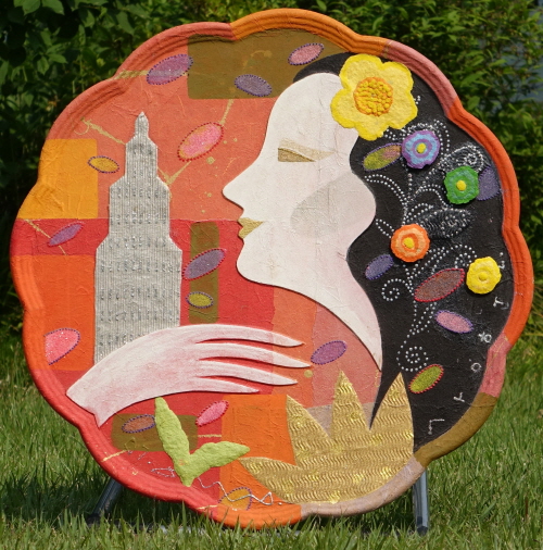 꿈꾸는 여인_72.7x72.2cm_색한지, mixed media
