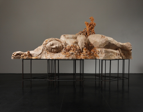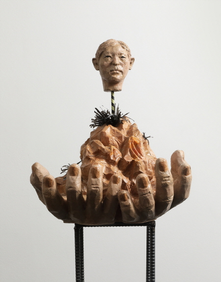 작가는 여성의 신체를 손끝으로 일일이 붙여 만든다. 여성적인 삶의 경험치가 고스란히 투영된 결과물이다. 거대 와상의 배 위로는 생명수가 자라나고, 반나상의 입에서는 편견과 억압에 저항하는 소심한 배설물들이 분출된다. 잘린 머리의 귓속으로는 ‘안전제일’이라는 위험신호가 송수신된다. 생명을 자라게 하는 탄생의 힘과 여성에게 가해진 남루한 편견, 이 양가적 헤게모니 사이에서 작가는 부단히도 씨름을 해왔고, 그 결과가 작업에 고스란히 녹아있다.