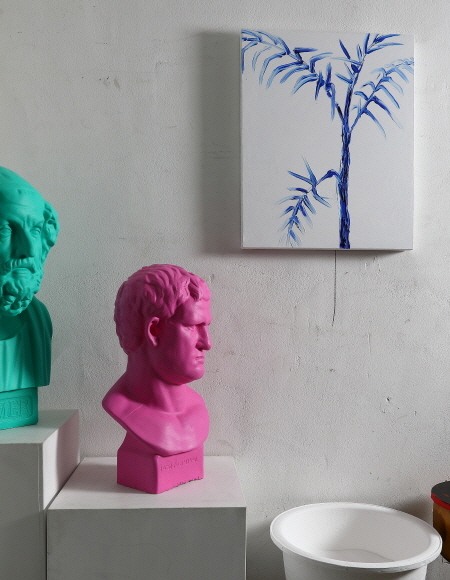 (중략) 근근이, 죽지 않고, 끈질기게, 남들이 뭐라 하건 있는 힘을 다해 살아가는 것들. 생수병, 사이다병이나 콜라병에 담아주기만 해도 살아나는 것들 말이다. 그의 그림 속 식물들은, 지조와 기개는 오히려 이거 아닌가? 하고 묻는 것만 같다. 중간이 뚝 잘려나간 나무 둥치에서 그래도 살겠다고 가지를 뻗거나, 햇빛을 향해 몸을 있는 대로 구부려 화분에서 막 삐져나올 것처럼 자라나고 있는 식물의 형태들은 이념이 아니라 현실의 기운을 반영한다.