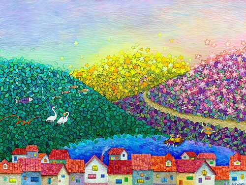 조숙연 作_비를타고 떠나는여행_72.7x60.6cm_mixed media_2021