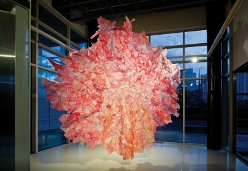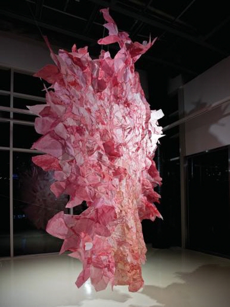 대학원 시절 작업실 바닥에 흩어져 있던 붉은 트레이싱 종이 조각들을 주워서 즉흥적으로 붉은 실로 바느질하며 조각들을 이어가기 시작한 이 작품은 완성에 대한 구체적인 계획이나 의도 없이 일종의 놀이이자 실험으로 ‘자라나가는 무언가’를 만들고 싶다는 생각으로 시작되었다. 이렇게 시작한 life 작품은 작품 제작 과정에서 연약한 종이 조각들이 서로 꿰매어져 연결되면서 얇고 연약한 종이 조각들이 생각보다 약하지 않고 강하다는 것 그리고 일종의 힘, 생명력을 지니게 되었다는 것을 깨닫게 되었다. 그리고 동시에 이 작은 한 조각의 종이가 나, 우리들 같다는 생각이 들었다. 우리들은 한없이 약한 존재임과 동시에 강한 존재이기도 하며 그리고 때때로 이런 작은 존재들이 힘을 합치면 그 누구도 상상하지 못한 커다란 무언가가 될 수 도 있는 무한한 가능성을 지닌 잠재적 존재들이다.