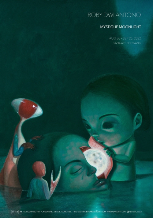 가나아트는 인도네시아 욕야카르타 출신의 시각예술가 로비 드위 안토노(Roby Dwi Antono, b. 1990)의 개인전 《Mystique Moonlight》를 개최한다. 어린 아이와 공룡, 해부학적 요소, 자연 풍경 등을 결합한 초현실적인 장면을 회화, 드로잉, 조각 등 다양한 매체를 통해 선보이는 그는 2017 족자비엔날레, 난주카 언더그라운드(도쿄), 싱크스페이스 프로젝트(로스앤젤레스) 등에서 작품을 선보이며 전 세계적인 주목을 받고 있다. 《Mystique Moonlight》는 국내에서 처음 열리는 안토노의 개인전으로, 밤하늘과 달빛에서 영감을 받아 제작된 회화와 드로잉 신작을 소개한다.