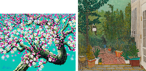 강남구 作_공간-생명력_Acrylic, Oil on Canvas_53x41cm_2019 (좌) 강재희 作_아버지의 정원_장지 채색_55x55cm_2022 (우)