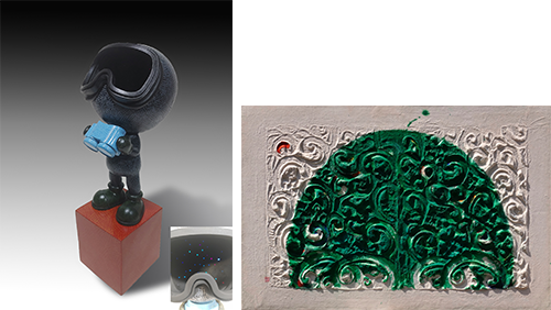 서동진 作_볼수있다면_혼합재료, 3dprint_13x15x36_2022 (좌) 송동옥 作_화엄_한지 한국화물감_67x45cm_2020 (우)