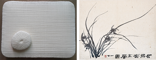 염현진 作_치유적풍경-Moon_Mixed media_45x36x6cm_2019 (좌) 윤종득 作_금란도_한지 먹_41x31cm_2019 (우)