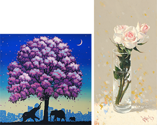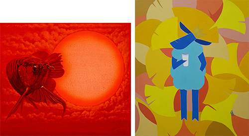 이두리 作_one's wish_Acrylic gouache on canvas_45.5x53cm_2022 (좌) 이상하 作_인생-가을 한잔_Acrylic on Canvas_50x60cm_2018 (우)