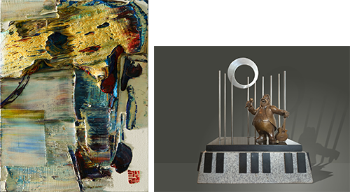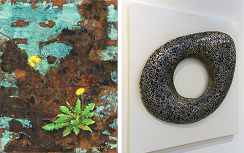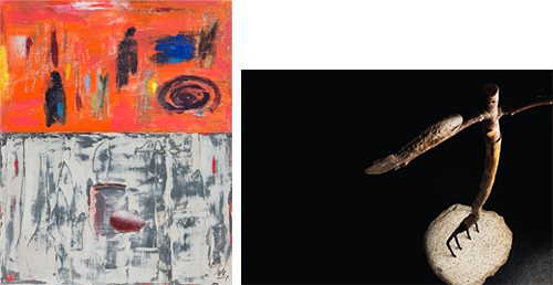 김영신 作_상생_mixed media, oil on canvas_41x53cm_2021 (좌) 김회준 作_relationship_stainless steel_63x58x9cm_2022 (우)