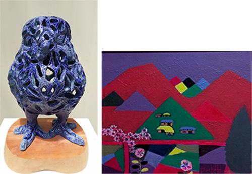 박성환 作_생존을 위한 진화_세라믹_25x25x40cm_2015 (좌) 박영동 作_봄날은 온다_Acrylic oil_45.5x37.9_2021 (우)