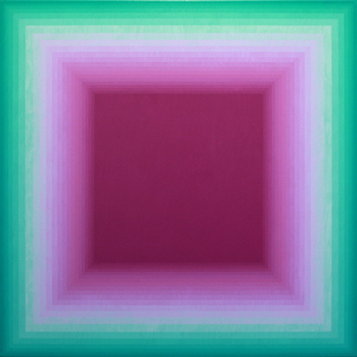 호주 태생의 앤디 하우드 Andy Harwood 는 브리즈번을 기반으로 활동하는 아티스트로 15 년 이상 시드니, 마드리드, 런던, 오스트리아의 여러 갤러리와 미술관 전시에 참여했다. 특히 2020 년에 앤디 하우드의 최근작인 <9 to the Power of 9 (2)> 는 브리즈번 미술관 Museum of Brisbane 의 전시인 《Bauhaus NOW》에 포함되며 미술관 큐레이터들과 세계 컬렉터들에게 상당한 관심을 받았다. 2004 년에 퀸즐랜드 대학 Queensland College of Art 에서 디자인을 전공한 앤디 하우드 Andy Harwood 는 몬드리안 Piet Mondrian, 말레비치 Kazimir Malevich 그리고 조셉 알버스 Josef Albers 에서 받은 영향과 자신의 디자인 전공 배경을 결합하여 작가만의 독특한 작품 세계를 확립하였다. 앤디 하우드 Andy Harwood는 기하학적이고 비구상 색 면 (abstract color field)을 통해 인간의 감정을 작가만의 시각적 언어로 표현한다. 이번 전시 《색면 추상; 빛 너머의 색》에서 선보이는 작품들은 작가의 최근작 <Future Rumination 2022> 시리즈의 일부로 추상 기하학이 관객에게 정서적 반응을 불러일으키는 능력에 대한 연구이다. 이 시리즈는 옵아트 Optical Art, 특히 조셉 알버스 Josef Albers의 작품, <정사각형에 대한 경의 Homage to the Square> 에 대한 오마주이다. 리처드 에누즈키에위즈 Richard Annuszkiewicz의 <템플 Temple> 시리즈에 영향을 받은 <Future Rumination> 시리즈는 망막과 뇌의 지각 사이의 기능적 관계를 탐구한다.