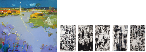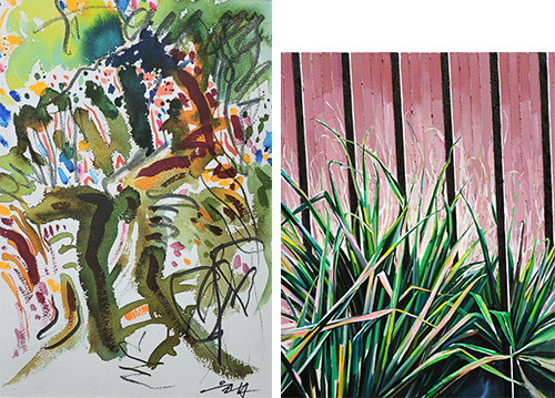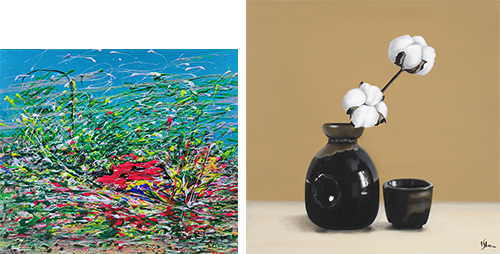 윤석 作_자연의 선율_Watercolor on paper_30x42cm_2020 (좌) 이병철 作_풀꽃_Oil on canvas_53x40.9cm_2021 (우)