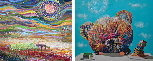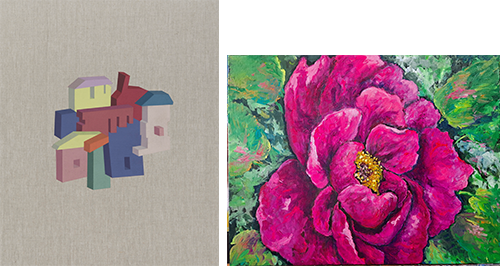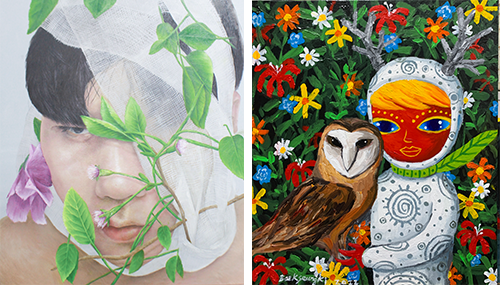 박건우 作_dreaming city_ acrylic on canvas_72.7x60.6cm_2022 (좌) 박수진 作_염원_53x40.9cm_2021 (우)