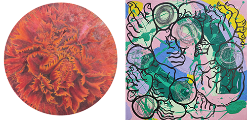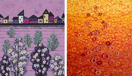 문민정 作_VACANCY-KkotGanJi_Mixed Media on Canvas_53x45.5cm_2020 (좌) 문선미 作_봉우리_oil on canvas_53x40.9cm_2017 (우)