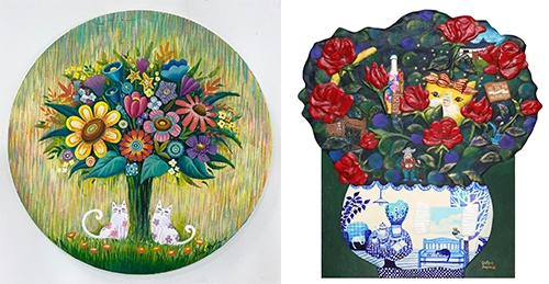 곽동희 作_꿈꾸는 고양이_Acrylic on canvas_50x50cm_2022 (좌) 구채연 作_우리함께_mixed media_52.5x48.0cm_2022 (우)