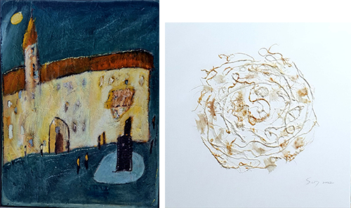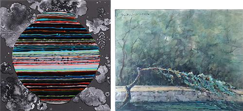 남여주 作_Reflective 22011_Mixed media_40x40cm_2022 (좌) 노희정 作_세월의 변주곡_Watercolor on paper_53x40.9cm_2021 (우)
