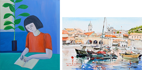 김윤선 作_혼자만의 시간_acrylic on canvas_53x46cm_2022 (좌) 김재열 作_듀브로 브니크 내항 2_water color paper_56x38cm_2019 (우)