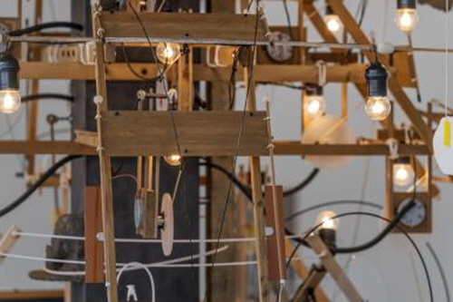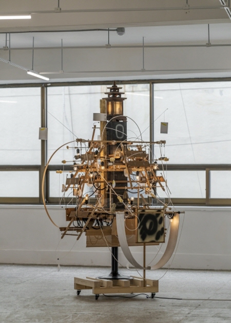 서서 일하는 사람들 #22_나무, 모터, 전구, 실, 복합재료_250(h)x180x180cm_2022