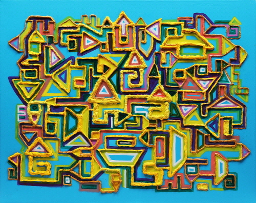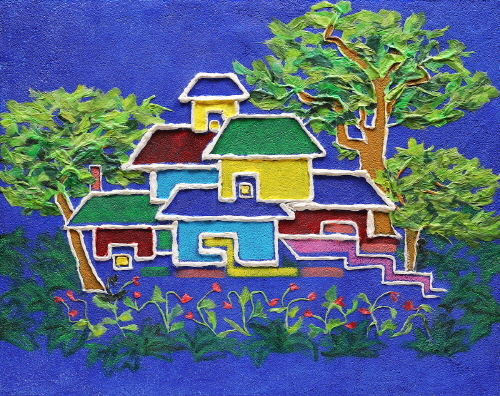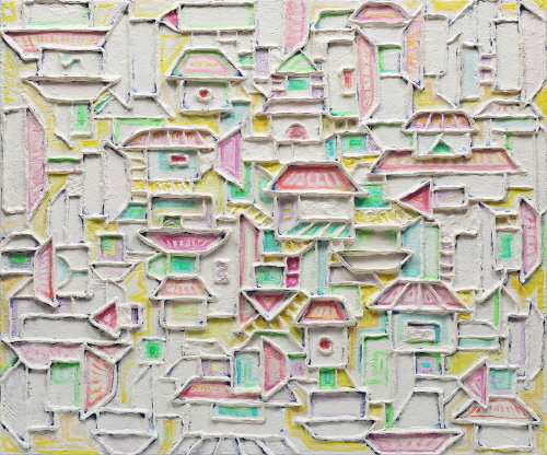 길도 집도 그려지는 것이 아니고 평면 위에 만들어 진다는 것이 그녀 예술의 특징이다.