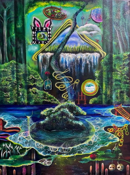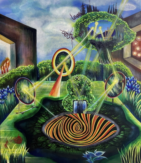 이 환상의 세계는 현실 속 불안함이 존재하지 않는 시공간을 일컫는다. 현실과 과거의 트라우마 속에서 탈피하고자 나만의 또 다른 세상을 확대하여 보는 이에게도 카타르시스를 동반하고자 한다. 각자 독창적으로 해석하여 일상 속 지루함에서 벗어나 무한한 상상의 나래를 펼쳐 보기를 소망한다.