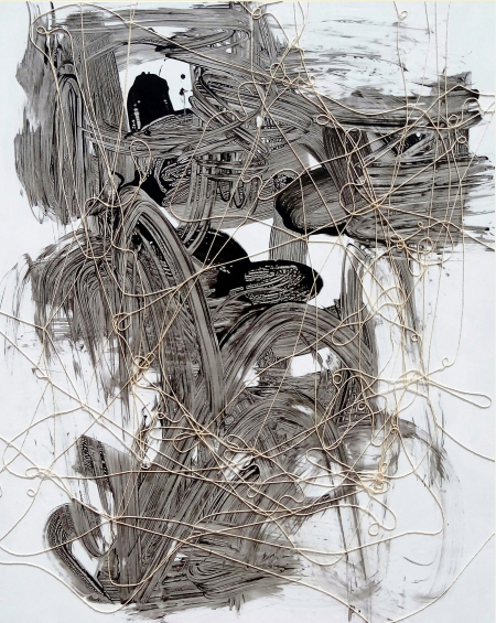 중기 작품은 초기 작업 개념을 평면에 적용을 시킨 작업을 하였다. 캔버스 위에 실을 뿌리고 그 실이 교차되면서 우연적이지만 내 머릿속에 인식되어져 있는 형상을 발견하여 이야기를 만들어 나가는 작업개념으로 작품을 제작하였다. 여기서 캔버스를 눕혀놓고 실을 공중에 뿌리는 이유는 자유로운 선을 나타내기 위함 이고 만약 내가 손으로 선을 그으면 나의 육체적인 한계와 고정된 정신이 자유로운 선을 나타내는데 방해가 될 것으로 생각하여 실을 뿌리게 되었다.