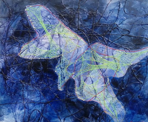 봄-우주에 선 긋기1 Drawing in the universe1_116.8x91cm_Mixed Media & Acrylic on canvas_2022