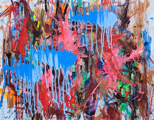 내가 보낸 신호, 내가 들었던 신호, 내가 듣는 신호가 나를 먹고있다 13 The signals I've heard and the one's I'm hearing are eating me 13_ 162x130cm_Mixed Media & Acrylic on canvas_2018