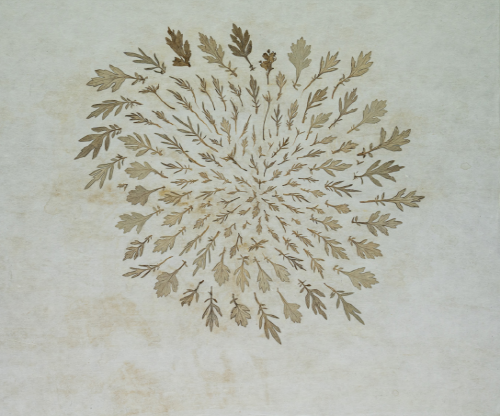 춤추는 미생물_543x304cm(전체) 총 16점의 부분으로 구성_한지, 물풀, 음식부산물_2019