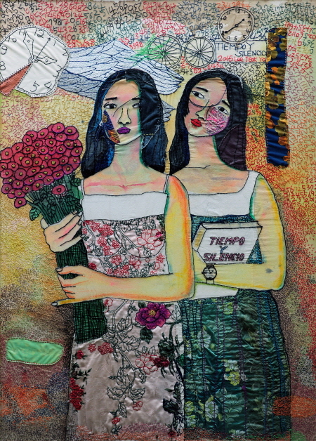시간과 침묵_101x138cm_천위에 바느질 드로잉 및 아크릴 칼라