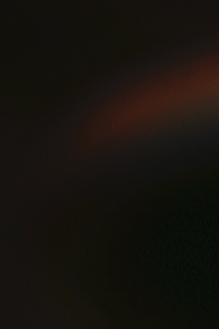 3. 작가는 불분명하지만 분명히 감성으로 느끼는, 형태 없는 그 무엇을 재현대상으로 삼았다. 물론 그 매개는 알이다. 그렇다고 알 자체를 보여주는 일은 결코 아니다. 달걀로 인해 전해진 온기와 생명의 신비, 그리고 그로인해 번지는 여러 상념이 표현하고자 하는 것이다. 명확하게 대상화할 수 없는 감성적 대상을 특정한 매체를 통해 재현하는 것이 예술이고 사진일 수 있다. 여기서 사진은 희박한 과거의 기억과 그 기억 속에 또렷이 남은 감각의 상처, 무의식 적이고 직감적인 작가의 감성에 의해 포착된 내재적 존재를 문제 삼는다. 사진은 그 미묘한 작가의 감성적 톤을 떠내는 작업이 된다. 사진적 방법을 이용하는 창작행위를 통해 그 것을 실행하는 일이 작업이 되는 것이다. 그 결과 사진은 어떤 조짐이나 기미, 흔적을 지닌 징후로서의 사진이 된다. 앞서 언급한 것처럼 이 사진은 불안한 경계로 나뉘고 흔들리며 중첩 된 흔적들로 자욱하다. 약간의 차이를 지닌 색들이 불길한 어둠을 가르고 출몰한다. 검은 덩어리를 연상시키는 물체가 설핏 등장하거나 시야를 가로막거나 모서리에 걸쳐있거나 진동하는 듯하다. 통상 사진이 대상을 고정시키는데 반해 이 사진은 유동적이고 암시적인 모종의 기운으로 채워져있다. 작가가 경험한 신비스러운 느낌의 재현을 위한 모호한 실루엣이고 빛이고 색채이자 덩어리이다. 따라서 관객이 볼 때 이 사진은 알 수 없는 난해한 자취이자 수수께끼일 뿐이다. 여기서 사진은 의미와 무의미의 경계에 자리한다. 작가가 사용하는 다중노출 기법 역시 하나이자 모두인, 하나이기도 하고 여럿이기도 한 이미지를 한자리에 중첩시킨 것이자 동시에 이질적인 시간과 공간이 한 화면에 지층처럼 포개진 흔적으로 볼 수 있다. 따라서 작가의 사진은 과거와 현재, 기억과 상상, 부재와 현존, 보이는 영역과 비가시적 영역이 공존하는 표면이 부유하고 있는 상태를 보여주는 사진, 이른바 생성적인 사진이다.