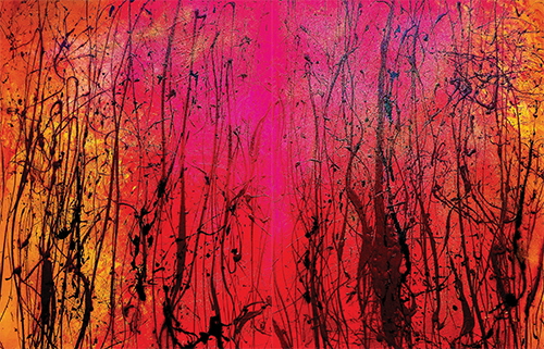 추상회화도 어느새 고전이 되었다. 뜨거운 추상, 즉 기존의 회화 양식으로부터 완전히 자유로운 추상회화가 출현한 게 2차대전 이후였으니, 80여 년이 지났다. 그런데도 추상회화는 여전히 다양한 얼굴로 모습을 바꾸어가는 현재진행형의 회화 양식으로 자리한다. 새로운 작가에 의해 새로운 방법이 모색되고 연구됨으로써 부단히 진화하고 있을뿐더러 그 표현영역 또한 확장되고 있다. 이로써 추상회화가 세계미술사에 얼마나 큰 영향을 미치고 있는 표현양식인지 알 수 있다. 소울황소의 작품에서 추상회화의 또 다른 얼굴과 마주하게 된다. 그의 그림은 표현 감정을 추상적인 이미지로 드러내는 전형적인 뜨거운 추상이다. 다양한 색채와 여러 가지 기법의 혼용함으로써 다소 복잡한 화면 구조를 보여준다. 우리에게 낯설지 않은 추상이다. 그런데도 차츰 눈에 익어가면서 무언가 기존의 추상과 조금은 다르다는 사실을 깨닫게 된다. 언급했듯이 색채, 기법, 그리고 구조에서는 낯설지 않은데도 세부적인 표현에서는 개별적인 해석이 드러나는 까닭이다. 개별적인 해석은 추상적인 이미지를 만들어내는 방법과 연관성이 있다. 그의 작업은 몇 가지 형식으로 분류할 수 있는데, 전형적인 흘리기나 뿌리기 중심의 작업과 문을 소재로 한 일련의 기하학적인 구성에 근사한 작업, 그리고 꿈틀거리는 모양으로 깊게 파인 선이 화면을 가득 채우는 작업이다. 이처럼 세 종류로 구분하는 건 기법과 방법에 따른 차이에 근거한다. 그의 작업은 아름다운 색채와 우연적이고 무의식적인 행위에 의한 이미지들의 조합이다. 어느 형식이나 여러 가지 색채들이 혼재하는 상황에서도 전체적인 통일감이 감지된다.