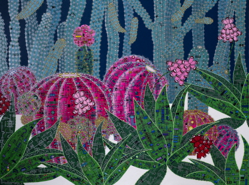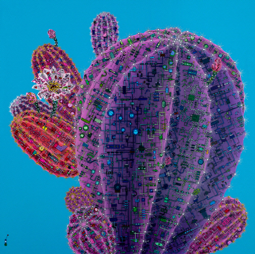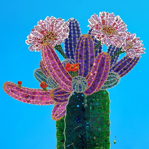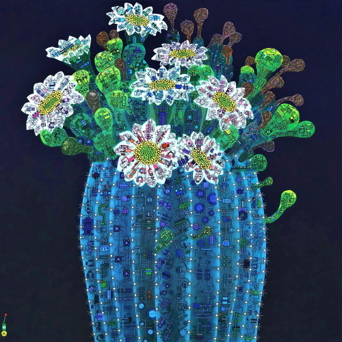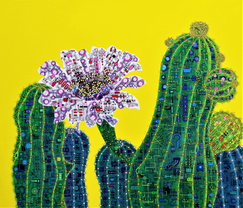 표현방법은 겹쳐진 흑백선의 회로도로 기본 골격으로 삼고 있다. 겹겹의 컬러회로는 흑백선의 기본 틀 위 가시의 형상으로 외부자극과 인식, 소통의지를 담고 있다. 선인장의 가시는 본디 잎이 변한 모습이다. 그것은 매우 방어적이고 날카롭지만 식물에서는 양분을 합성시키는 역할을 하는 것이다. 그러므로 가시는 외부소통과의 연결고리로 볼 수 있다. 이를 통해 선인장이 가지고 있는 강인한 생명력과 외부의 조화된 형상 이미지에서 우리들의 모습을 찾아볼 수 있다.
