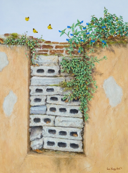 온 우주는 살아있다. '살아있슴' 에 경계는 없다. 눈에 보이는 시선, 담장 안에도, 그 너머 세상에도 생명이 있다. 담장은 마음의 경계이다. 따스한 숨결이 굳은 담장에 꽃을 피운다. 마음의 경계를 허물고 보면 우주 자체의 생명이 존재로 다가온다. 온전한 생명으로 탄생한 존재는 나비가 되어 날 아 오른다.