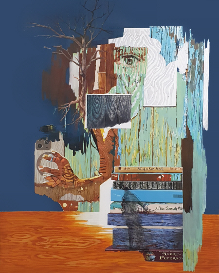권민정 作_WOODMEN MONTAGE SERIES, Homo Digitalis_162.2x130.3cm_Acrylic on Canvas_2022