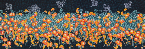 능소화(나비의사랑-悠悠自適)_117x72cm_장지에 채색, 분채,석채_2022