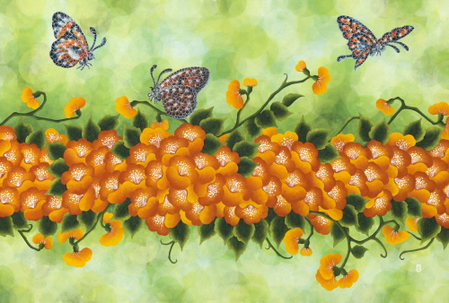 능소화(나비의사랑)_53x72.5cm_장지에 채색, 분채, 석채_2022