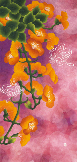 능소화(나비의사랑)_28x59cm_장지에 채색, 분채, 석채_2022