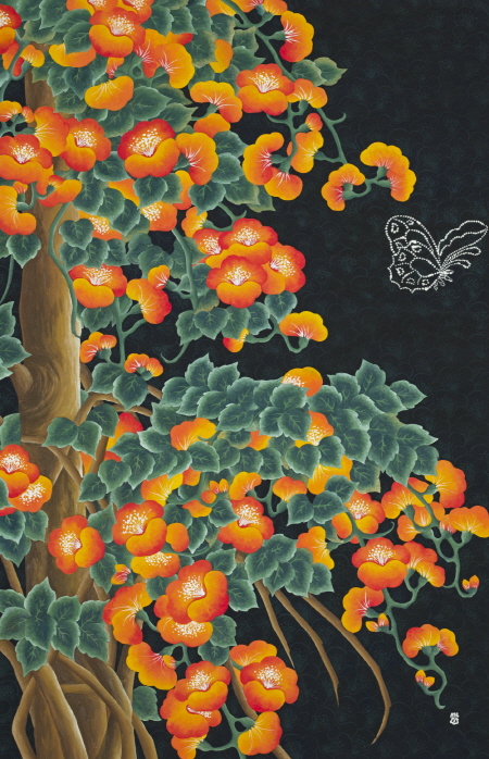 능소화(나비의사랑)_51x36.5cm_장지에 채색, 분채, 석채_2022