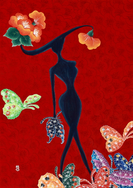 능소화와 나비라는 주제를 가지고 전통채색과 현대적인 조형성을 조합하여 인간의 사랑을 표현하는 나의 작업과정이다. 莊子의 호접지몽“胡蝶之夢“의 우화에서 보여 지듯이 나의 작품 속에서는 능소화가 나비가 된 건지 나비가 능소화가 된 건지 알 수 없는 혼미한 세계 독창적으로 만들어진 꽃나비를 통해 바라보는 사랑, 만남, 이별 죽음 환생의 여정을 나비로 승화시켜 표현되어 왔다. 능소화 - 나비 - 승화된 인간 나비의 이상의 상승단계에 진입하면서 나는 죽음으로서 이상세계는 인간과 나비 새로운 존재를 통해 직관으로서 미적관조, 여기서 관조는 내가 독립적으로 바라보는 시선을 통해 미적 경험으로 초월로의 새로운 관망이다. 장자의 초월은 물리적 세계에 영향을 받지 않으며, 그 안에서 한계를 느끼지 않고 오히려 자유롭게 유행하며 노니는 遊인 것이나, 나의 작품 속에 어우러진 인간의 형상은 곧 내가 바라보는 관조의 대상이 되어 관찰하고 부분의 확대 해석되어 작품 속에 내재된 초월의 상징물로 보여지고 있다. 그러므로 초월은 장자가 죽음과 삶의 필연성을 명(命)에서 찾음으로서 그 괴로움을 벗어나고자 했던 것처럼 나는 사랑에서 시작된 존재의 초월은 죽음으로 하여금 이상의 세계를 꿈꾸게 한다. 파현화된 인간의 본성을 초월적인 우주공간에 분산시켜 나의 새로운 생명력인 탄생의 진입으로 낙원에의 노스탤지어를 향한 순수 자연 그대로의 원형 상태 즉 다시 사랑의 시작점을 찾고자 하는 상징이며, 남녀간의 사랑에서 보다 근원적인 생명의 신비를 느끼고 순수한 영혼을 되돌리고 싶은 소망을 담아 인간과 꽃과 나비와 결합의 환생을 통해 초월의 遊로 진입하여 悠悠自適하며 새롭게 태어나고자 하는 희망으로 나비들의 세상에서 행복한 꿈속으로의 자유로운 여행을 펼쳐보고자 하는 작업세계이다.