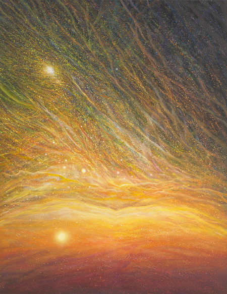 평생 동안 지속적으로 그림을 그려 온 작가에게 예술의 공간은 일상 가운데 마주하는 빛의 이미지를 통해 인간의 삶에서부터 우주적인 세계를 성찰하는 사유의 공간이다. 이처럼 삶과 예술의 여정 가운데 강렬하게 흐르는 빛의 생명력을 매일 응시하고 성찰하면서 창조의 빛으로 확장되는 예술 세계를 희망한다.