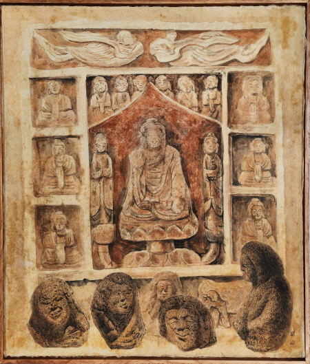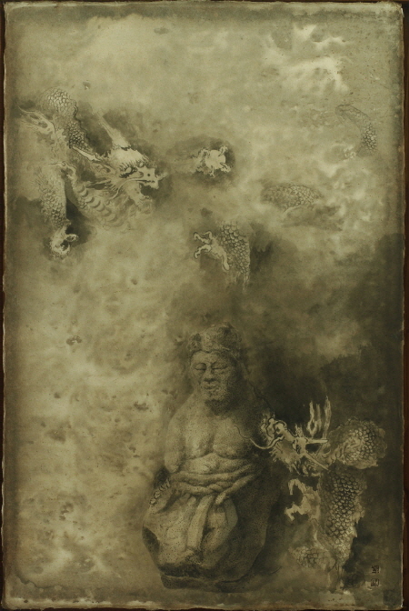 여의주를 문 용과 석가모니불_94x63.5cm_장지에 수묵 + 옻칠_2022