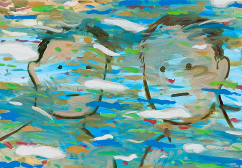 당신의 목소리, 내 눈에 비치는 너의 실재, 시간은 찰나에 정지된 채로 서로를 훑고, 나는 매일 새로운 누군가를 목도하는 순간을 감각한다. 얼굴은 눈, 코, 입의 형태 외에도 피부, 헤어스타일, 옷, 색 등이 전반적으로 어우러져 그를 구성한다. 서로를 바라보며 온전히 집중하는 찰나의 순간, 너의 얼굴 너머의 오라aura를 본다. 오라는 그 두께나 거리, 색채 등이 고정되지 않은 채 스스럼없이 뻗어 나와 공기 속에서 끊임없이 움직인다. 나는 숨을 한번 크게 들이마시고, 조심스럽게 내뱉으며 마주하고 있는 오라의 공기 속에 서서히 용해된다. 공기는 느슨해졌다가 때로는 주욱 늘어나고 또 때로는 조글조글해진다. 우리는 서로를 뒤섞고 찌르고 두드리고 어루만진다.