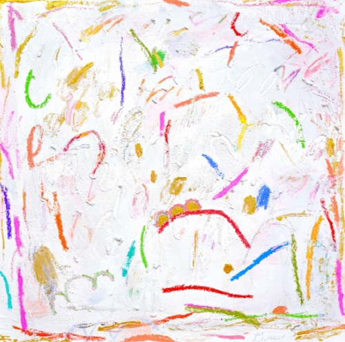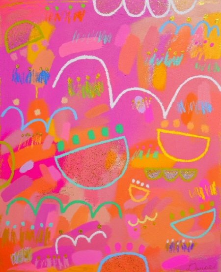 나의 작업에는 흩날리는 선(fluttering line), 둥근 선(round line), 낙서하는 듯한 제스처(graffiti-like gesture) 등이 자주 등장한다. 마치 악보 속 적정한 부분에 음표를 그려 넣듯, 지휘를 하듯, 화면 속 적절하다 생각되는 부분을 긁고, 긋는 선으로 채운다. 이러한 선(line)은 색과 어우러져 균형과 리듬을 만들어낸다. 선은 화면 속에서 조화와 균형이 어우러지는 공간을 찾는 하나의 과정이자, 그림 안에서 최상의 리듬을 찾기 위한 도구이다. 이는 더 나 아가 시간과 공간에 걸쳐 채워지는 나의 감정이기도 하다.