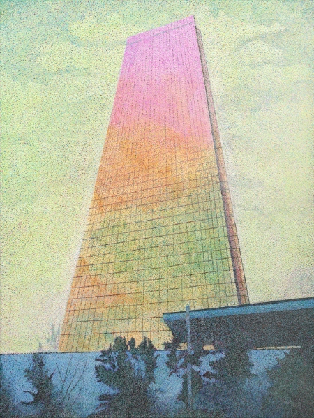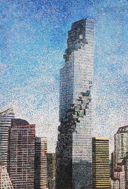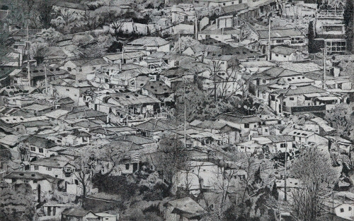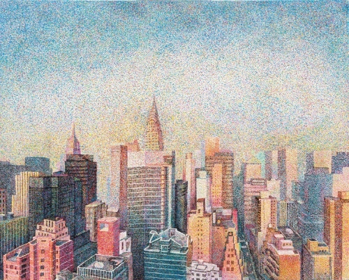 이 그림들은 내가 사는 도시를 그렸고, 행복이 찍혀있는 일상을 담았습니다. 여러 색상의 작은 점으로 여백을 채워나가는 것이 비효율적이고 작업기간이 점점 길어집니다. 결국에는 보여주고자 하는 작품의 의미는 희미해지고, 어느새 점을 찍어내는 행위에 집착하는 내 자신을 발견하게 됩니다.