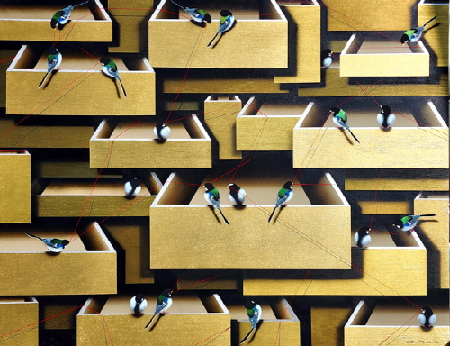 박새의 날갯짓이 시각적 파동을 불러일으키는 순간 서로 관계를 맺고 살아가는 개별의 삶이 모여 공동체를 이루는 형태로 무리 짓는 광경을 맞이하게 한다. 흐트러짐 없는 오브제의 세밀한 정확도, 화려한 이미지와 색감의 반복은 작가 홍경택의 현대인의 집착적인 욕망과 대중적인 것에 대한 자신만의 첨예한 시각과 관점을 투여한 것으로 리듬감 있는 색채의 향연을 선사한다. 아이의 순수함을 담은 듯한 이미지와 밝고 경쾌한 컬러팔레트를 보여주는 작가 우국원의 작업은 화면 위에 풀어내는 이야기가 자신의 감정으로부터 출발한다는 점과 서정적인