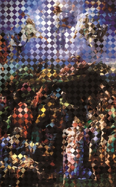 한지훈 作_This is not a man 2_printed tape, acrylic on canvas_130x80cm_2022