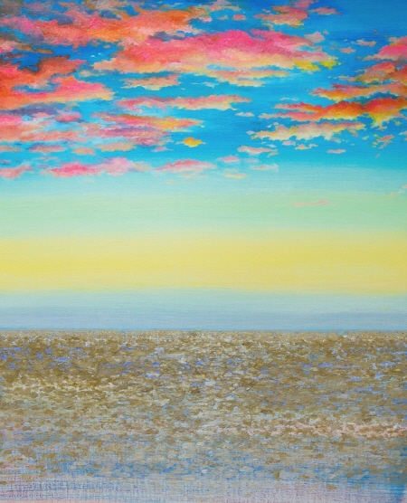 여기, 슬픔이든 기쁨이든 그 어떤 감정의 순간에도 광활한 포용력으로 품어내는 자연이 있다. 당신이 겪는 폭풍 같은 상황들은 그저 ‘찻잔속의 태풍’라고 말해주는 대자연이 있다. 거대한 소용돌이가 나를 집어 삼키고 도저히 감당하기 어려운 것 같지만 그건 그저 작은 찻잔속의 일이고 한 발작 뒤에서 보면 별 일 아닌 듯 세상은 고요히 흘러가고 있다. 그림 앞에서 심호흡을 크게 해보자. 그림은 실제 바다와 오버랩 되고 확장되어 위안의 손길을 내준다. 잔잔하게 시작되던 파도는 어느새 커다란 파장이 되어 위로가 되어주고 다시 열심히 살아갈 에너지로 변환된다. 내가 그랬었던 것처럼.