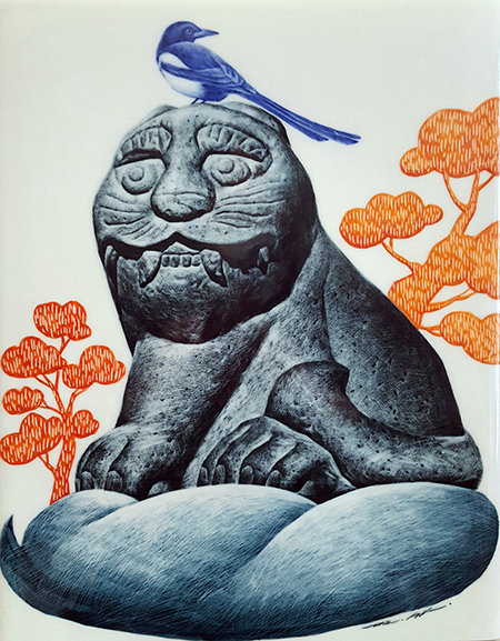 Hojakdo, featuring tigers and magpies, was painted like a talisman in the new year to signify good luck, and was given as a gift and used. It is also known abroad, and has come to be established as a field of painting that symbolizes Korea today. It would be good if the tradition to convey and be together with the meaning of exorcism that only good things will happen in the new year by preventing bad things will continue as if the warm intentions that started should be conveyed. It is for the same reason that I am interested in Hojakdo and try to incorporate it into my work.