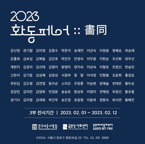 * 전시메일에 등록된 모든 이미지와 글은 작가와 필자에게 저작권이 있습니다. * vol.20230201-2023 화동페어 3부 |