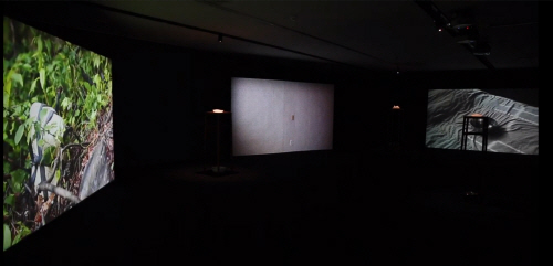 이창훈 作_꼬리_3채널 영상_포집한 물, 냉동고, 그릇, 몰드, 목재, 분재_가변크기_2020